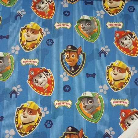 Esta tela presenta un estampado muy original, inspirado en la serie de dibujos animados la «Patrulla Canina». En la tela de color azul encontrarás los dibujos de Marcus, Ruben, Chase y los demás personajes e integrantes de la patrulla de perritos.
