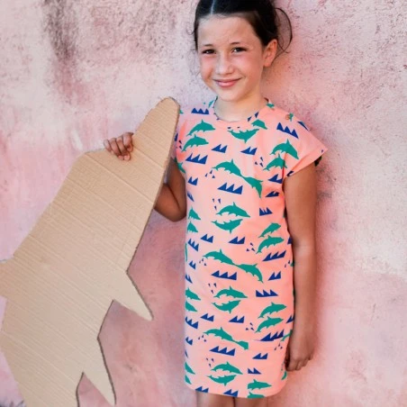 La Tela Jersey Katia – Dolphin Pink cuenta con un divertido estampado de delfines saltando entre las olas del mar de formas geométricas. El fondo es de color rosa suave, perfecto para confeccionar prendas originales para los niños.