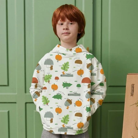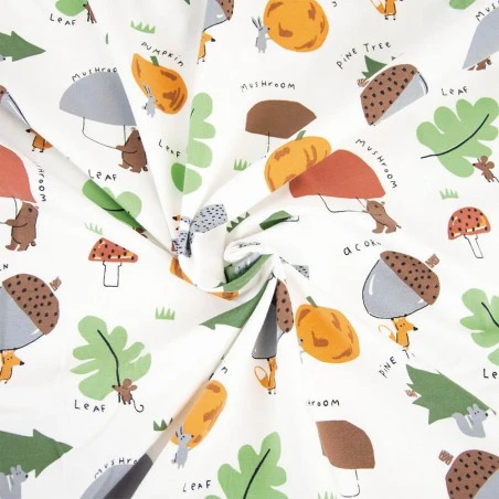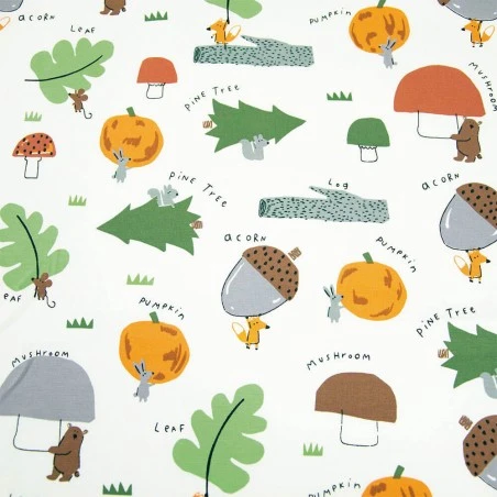 Su encantador estampado de ardillas, calabazas, pinos y avellanas sobre un fondo crudo, le da un toque alegre e infantil que encantará a los más pequeños de la familia. Crea prendas para la temporada de invierno con la suavidad y el diseño divertido de Winter Harvest. ¡Una opción ideal para crear looks acogedores y con estilo!
