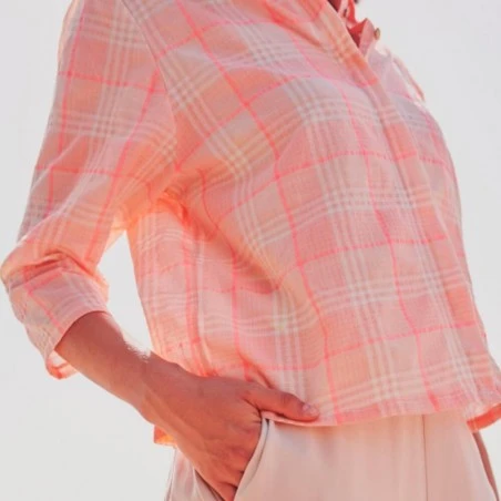 La Tela Madrás Katia – Flúor es la elección perfecta para quienes buscan añadir un toque de colores vibrantes a sus prendas. Esta tela para camisas es fina y ligera, con un peso de 95 g/m², presenta un diseño de cuadros en colores neón que destaca por su modernidad y estilo.