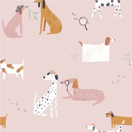 Cuenta con un estampado de simpáticos perros de diferentes razas sobre un fondo de color rosa suave. Algunos de los perritos están vestidos de detectives, con lupas para investigarlo todo. ¡Será perfecta para los amantes de los animales!