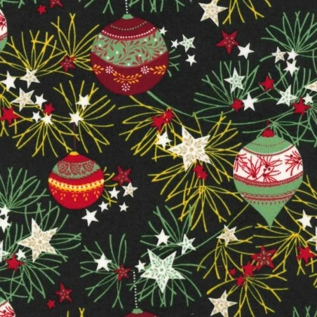 El diseño de esta tela presenta un estampado encantador de bolas de Navidad, estrellas y luces, que añadirá un toque festivo a tus creaciones. Además, está disponible en tres opciones de color: rojo, verde y blanco, todos ellos tonos muy representativos de la Navidad.