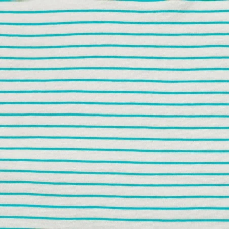 La tela Slub Jersey Stripes Aqua es un tejido de punto algo elástico perfecto para verano. Es muy ligero y fresco, y está recomendado para trabajar proyectos para niños, bebés o mayores.